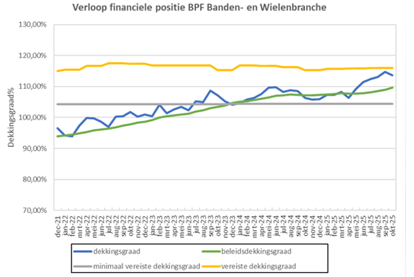De financiële positie van Bpf Banden en Wielen is al langere tijd niet sterk. Onze beleidsdekkingsgraad ligt onder de vereiste dekkingsgraad. Daarom heeft ons pensioenfonds een herstelplan ingediend bij De Nederlandsche Bank (DNB). Volgens dit herstelplan lukt het ons om binnen 12 jaar financieel te herstellen. Zolang onze financiële positie niet voldoende is, moeten we het herstelplan elk jaar aanpassen en opnieuw indienen bij DNB. Lees hier meer over het herstelplan