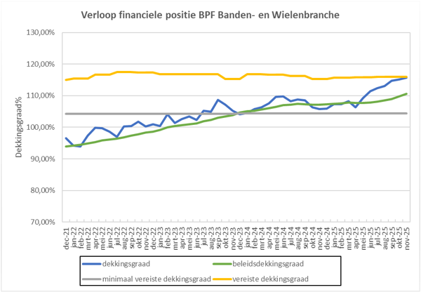 De financiële positie van Bpf Banden en Wielen is al langere tijd niet sterk. Onze beleidsdekkingsgraad ligt onder de vereiste dekkingsgraad. Daarom heeft ons pensioenfonds een herstelplan ingediend bij De Nederlandsche Bank (DNB). Volgens dit herstelplan lukt het ons om binnen 12 jaar financieel te herstellen. Zolang onze financiële positie niet voldoende is, moeten we het herstelplan elk jaar aanpassen en opnieuw indienen bij DNB. Lees hier meer over het herstelplan